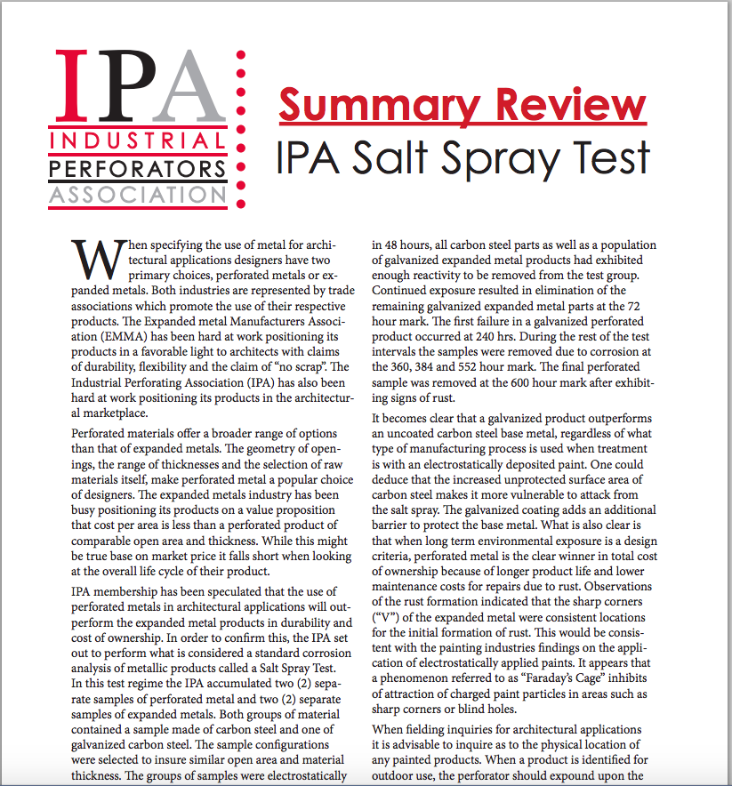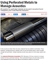 A cover story in Metal Architecture's April issue, written by IPA's Bob Farber, provides the reader with an in depth look at the different architectural applications of perforated metal, expanded metal and wire cloth while at the same time expanding on the aesthetics, acoustics, and ventilation qualities of each. read more...